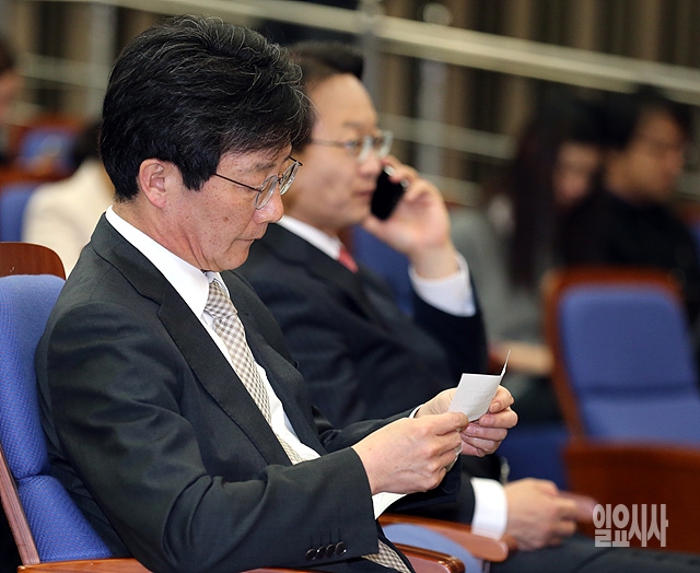 1일, 서울 여의도 국회서 열린 새누리당 정책의총 도중 유승민 원내대표가 쪽지를 확인하고 있다.