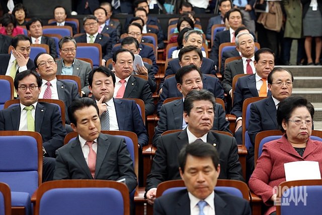 1일, 서울 여의도 국회서 새누리당 유승민 원내대표, 조해진 원내수석부대표 등이 참석한 가운데 정책 의원총회가 열리고 있다.