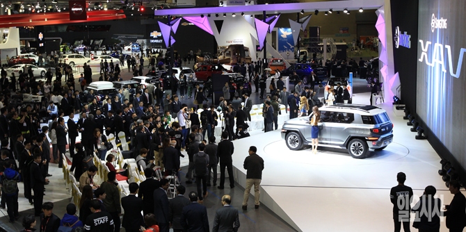 2일 오전 경기도 일산 킨텍스에서 열린 '2015 서울모터쇼 프레스데이'에 취재진들이 몰려있다.  '2015 서울모터쇼'는 이날 언론공개 행사를 시작으로 오는 12일까지 계속된다.