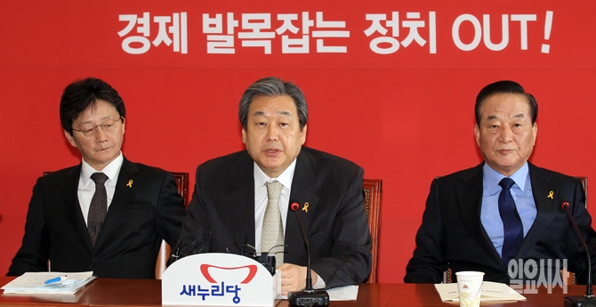 새누리당 김무성 대표(가운데)가 13일 오전 서울 여의도 국회에서 열린 당 최고위원회의에서 모두발언을 하고 있다.