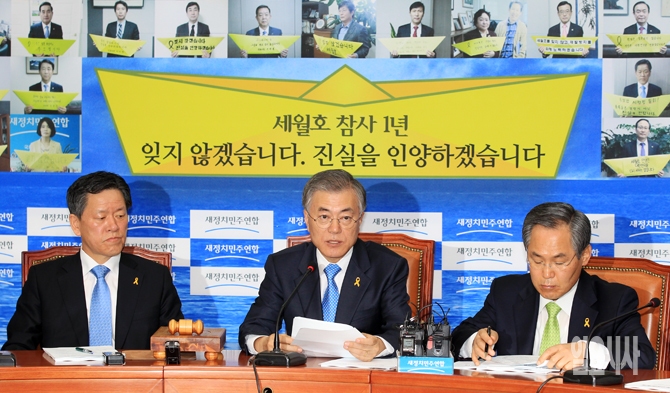 새정치민주연합 문재인 대표(가운데)가 13일 오전 서울 여의도 국회에서 열린 당 최고위원회의에서 모두발언을 하고 있다.