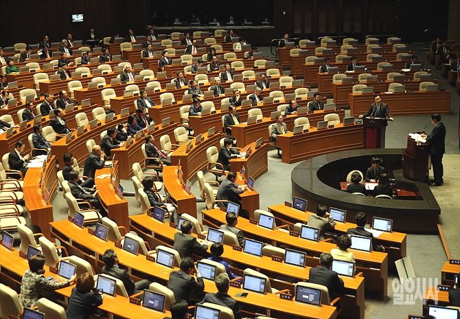 13일, 서울 여의도 국회 본회의장서 열린 국회 대정부질문 첫째날, 이완구 국무총리가 한 의원 질의에 답변하고 있다.