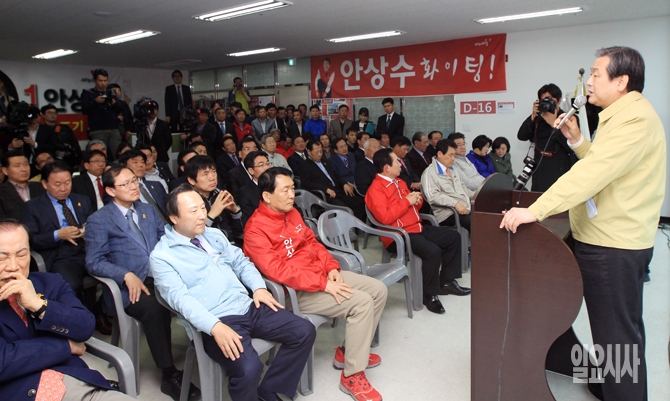 13일 오후 새누리당 인천 서구·강화을에 나가는 안상수 후보의 선거사무소에서 열린 '인천시당 선거대책위원회 검단·강화 경제 살림꾼 새줌마 발대식'에서 김무성 대표가 당원들에게 안 후보의 지지를 호소하고 있다.