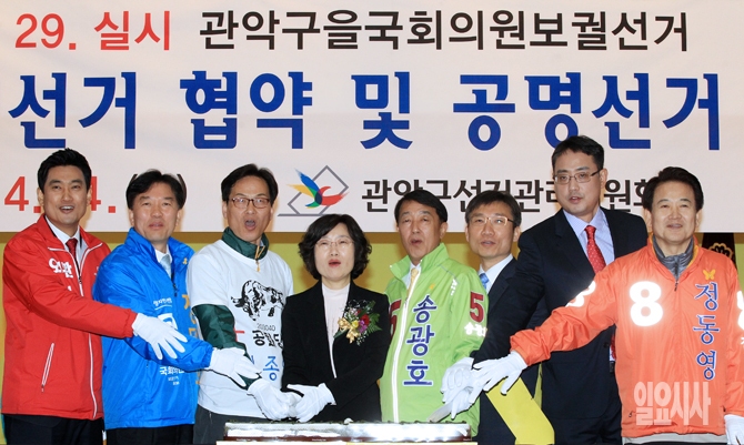 [포토] 공명선거 다짐하는 4·29 재보선 관악을 후보들