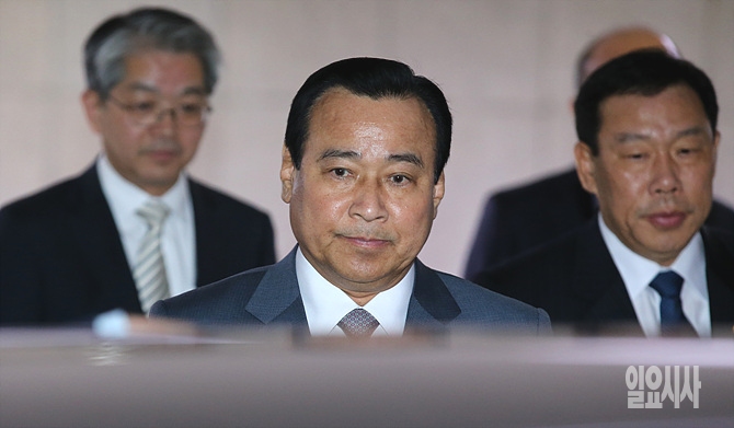 14일, 이른바 '성완종 리스트'에 오른 이완구 국무총리가 굳은 표정으로 관계자들과 함께 서울 여의도 국회를 나서고 있다.