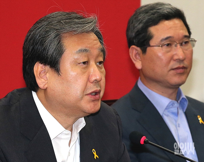 16일, 서울 여의도 국회 새누리당 최고위원회의실서 김무성 대표가 청와대 박근혜 대통령과의 비공개 단독회동 직후 기자간담회에서 발언하고 있다.