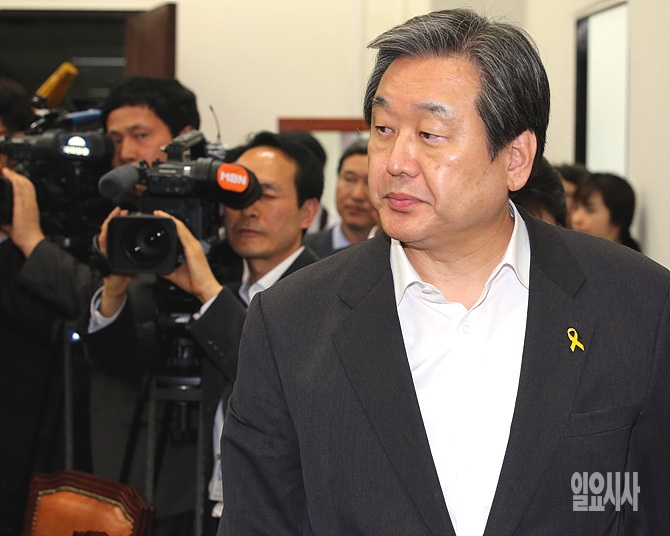 16일, 서울 여의도 국회 새누리당 최고위원회의실서 김무성 대표가 청와대 박근혜 대통령과의 비공개 단독회동 직후 기자간담회을 위해 입장하며 착찹한 표정을 짓고 있다.