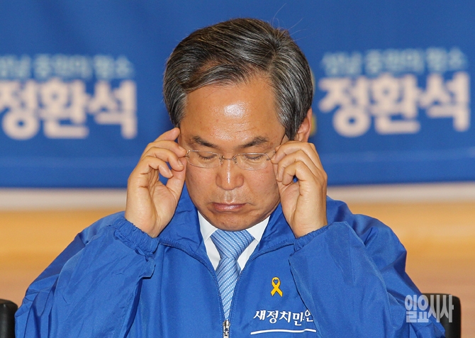 새정치민주연합 우윤근 원내대표가 20일 오전 경기도 성남 중원구 성남산업단지관리공단에서 열린 현장 최고위원회의에서 안경을 고쳐쓰고 있다.