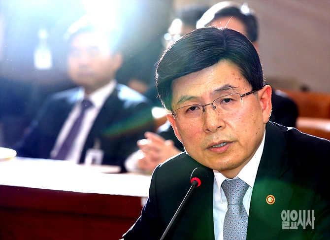20일, 서울 여의도 국회 법제사법위원회 회의실서 열린 법사위 전체회의에서 '성완종 리스트' 관련 회의가 열린 가운데, 황교안 법무부장관이 출석해 의원들의 질의에 답변하고 있다.