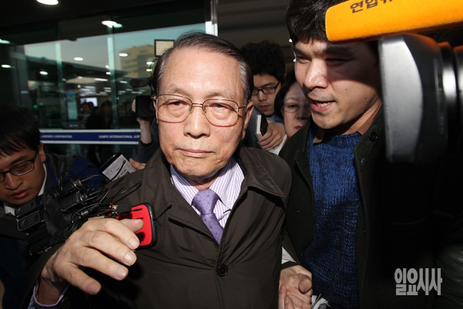 '성완종 리스트'에 이름이 오른 김기춘 전 대통령 비서실장이 20일 오후 서울 강서구 공항동 김포공항을 통해 귀국하고 있다.