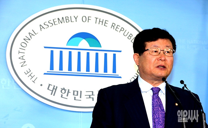 4일, 설훈 새정치민주연합 의원이 서울 여의도 국회 정론관을 찾아 원내대표 경선 출마를 선언하고 있다.