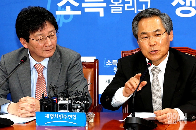 4일, 서울 여의도 국회에서 유승민·우윤근 여야 원내대표, 조해진·안규백 여야 원내수석부대표 등 지도부가 '2+2' 주례회동을 갖고 있는 가운데 새정치민주연합 우 원내대표가 발언하고 있다.