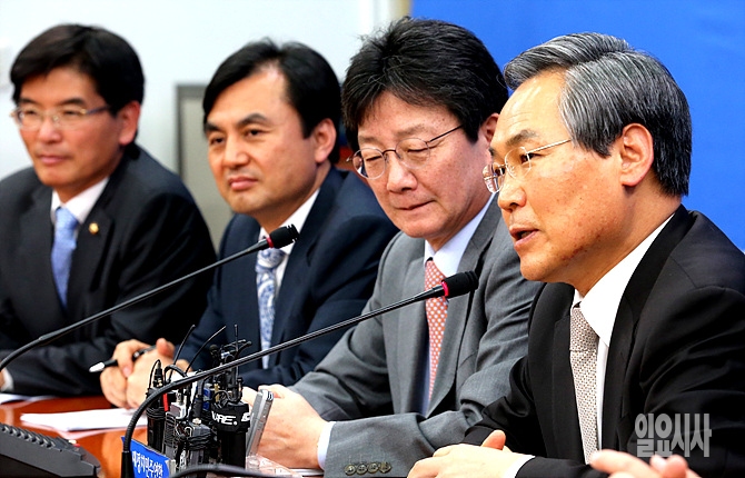 4일, 서울 여의도 국회에서 유승민·우윤근 여야 원내대표, 조해진·안규백 여야 원내수석부대표 등 지도부가 '2+2 주례회동'에서 발언하고 있다.