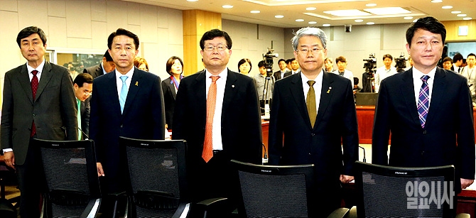 6일, 서울 여의도 국회 의원회관 제1세미나실에서 열린 새정치민주연합 원내대표 후보 합동토론회가 열린 가운데, 토론회 직전 기념촬영을 하고 있다.