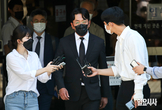 [포토] bhc 박현종 법원 출석...직원들 '회장님 얼굴을 가려라'