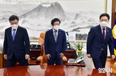 [포토] '언론중재법 본회의 상정 여부' 국회의장과 여야 원내대표 회동