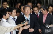 [포토] '유승민 의총' 마치고 나오는 김무성 대표