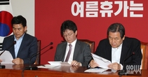 [포토] 김무성-유승민-김태호, '불편한 자리'