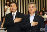 [포토] 국기에 대한 경례하는 문재인-이종걸