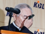 [포토] 김영기 KBL 총재, '진땀나는 기자회견'