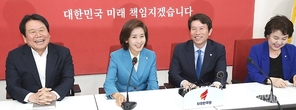 [포토] 활짝 웃는 나경원-이인영, 인사할 때만 반갑?