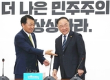 [포토] 홍남기 예방에 활짝 웃는 김관영 원내대표