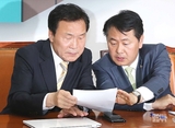 [포토] 기자간담회 발언문 상의하는 손학규-김관영