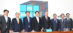 [포토] 기념촬영 갖는 반기문-바른미래당 지도부