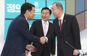 [포토] 멋쩍게 악수 나누는 손학규-반기문