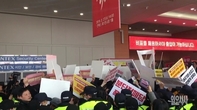 ‘민노총 기습시위’로 한국당 2·27 전당대회 아수라장
