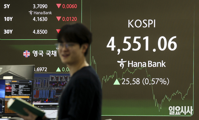 [포토] 코스피 장 중 4,600 돌파...종가 4,551.06 마감