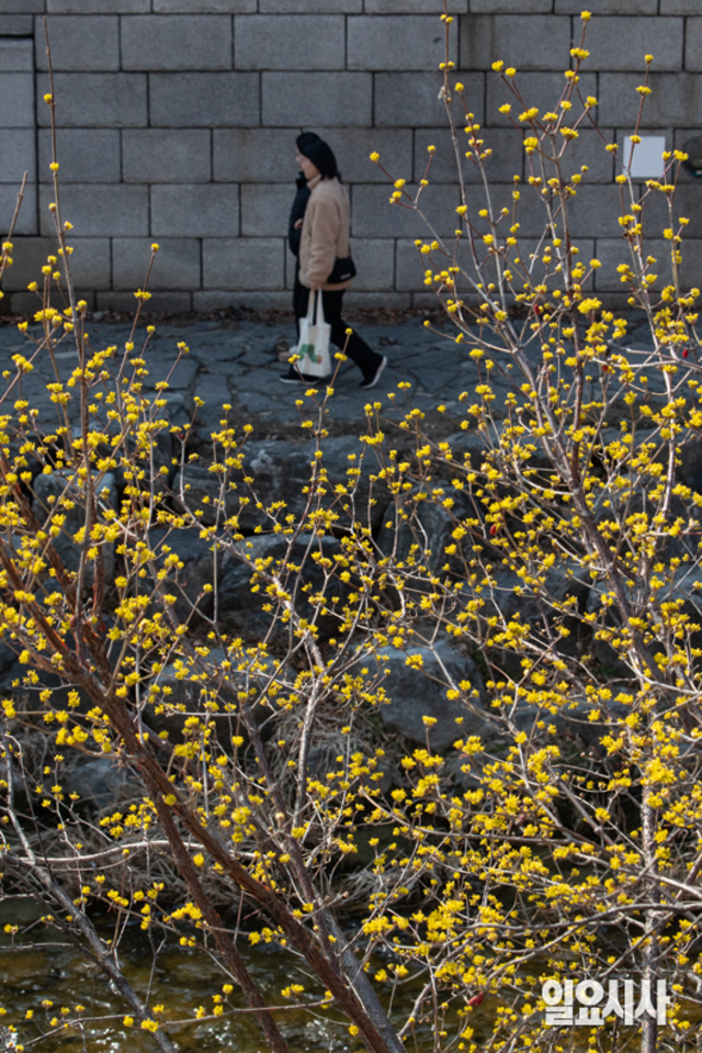 [포토] 영하권 추위…꽃망울 터트리기 시작한 산수유