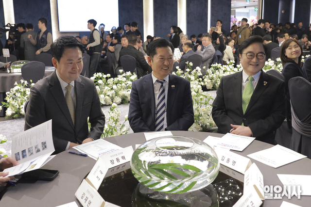 [포토] 한국노총 창립 80주년 기념식 참석한 장동혁-정청래-우원식