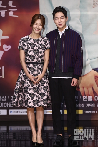 배우 이윤지, 손승원이 18일 오후 서울 마포구 MBC 상암사옥에서 열린 MBC 새 일일 연속극 <행복을 주는 사람> 제작발표회에서 포토타임을 갖고 있다.