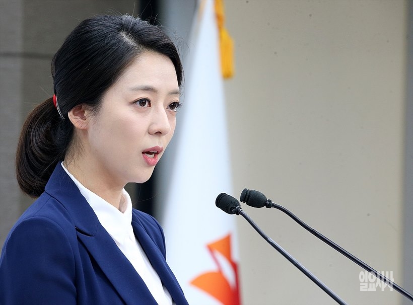배현진 전 MBC 앵커가 30일, 서울 여의도 당사에서 송파을 6·23재보선 예비후보 출마 기자회견을 갖고 있다.