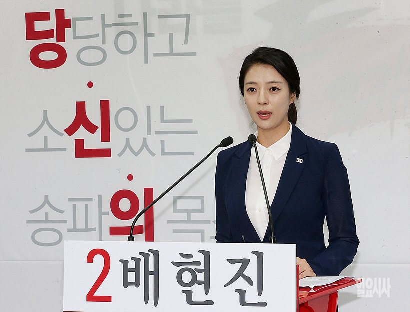 배현진 전 MBC 앵커가 30일, 서울 여의도 당사에서 송파을 6·23재보선 예비후보 출마 기자회견을 갖고 있다.