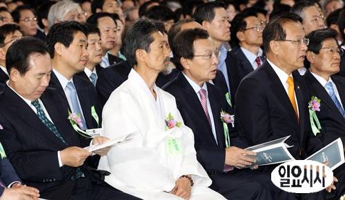 제64주년 제헌절을 맞아 17일 국회에서 열린 경축식에 이인제 선진통일당-강기갑 통합진보당-이해찬 민주통합당-황우여 새누리당 대표(왼쪽부터)가 나란히 배석했다.