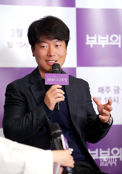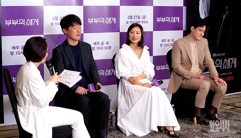 모완일 감독, 배우 김희애, 박해준(왼쪽부터)이 26일 온라인으로 진행된 JTBC 새 금토드라마 <부부의 세계> 제작발표회에서 포토타임을 갖고 있다. ⓒJTBC