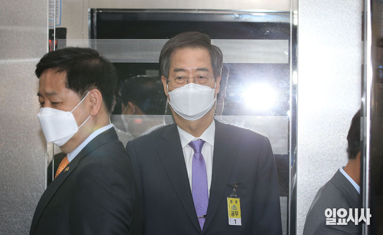 한덕수 국무총리 후보자가 25일 오후 서울 여의도 국회에서 열린 인사청문회 산회 직후 청문회장을 나서고 있다.