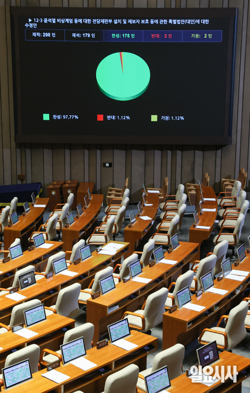 이후 오후 본회의에서 진행된 내란전담재판부 설치법은 재적 179인 중 찬성 175인, 반대 2인, 기권 2인으로 본회의를 통과했다.