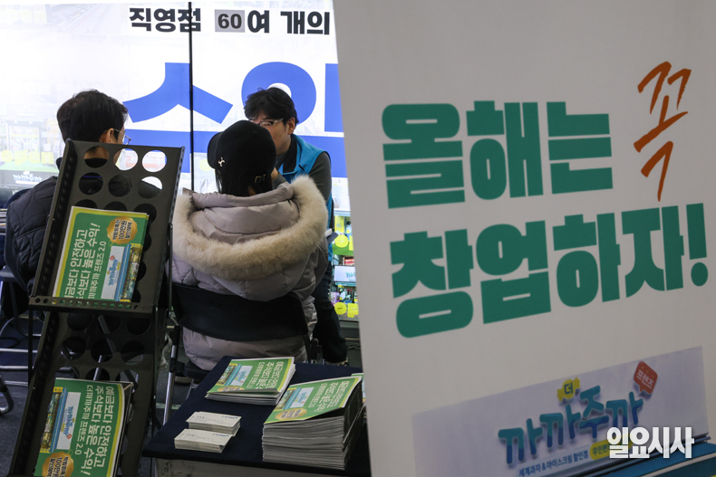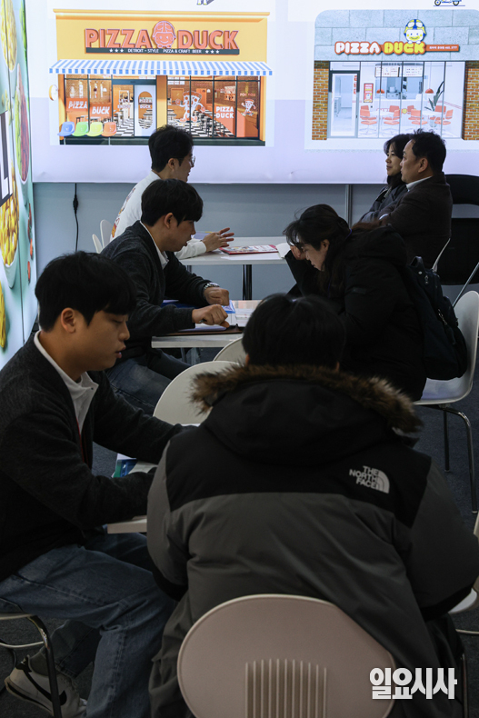 16일 오전 서울 강남구 코엑스에서 열린 ‘제82회 프랜차이즈 창업 박람회 2026’ 행사장을 찾은 관람객들이 상담을 받고 있다.