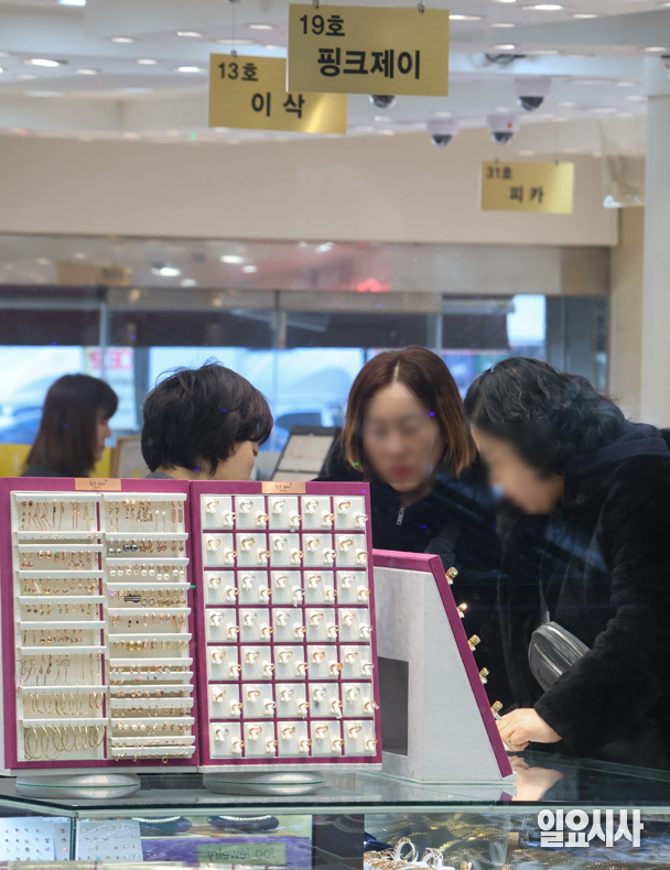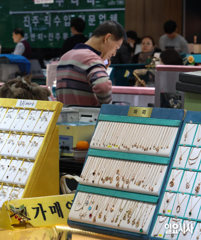 국제 금값이 사상 처음으로 온스당 5200달러를 넘어선 가운데 28일 오후 서울 종로구 귀금속 상가를 찾은 손님이 상담을 받고 있다.