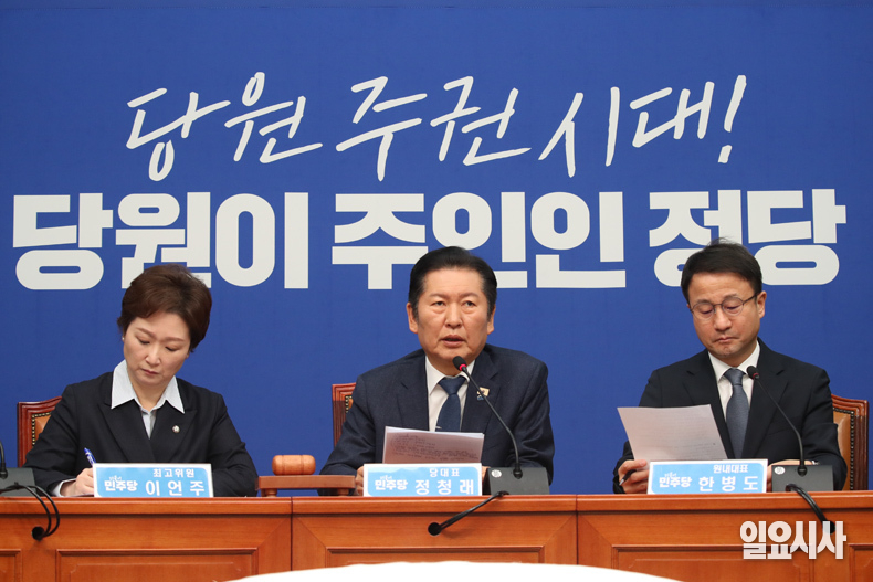 [포토] 정청래 대표 '조국혁신당 합당 문건 유출 조사 지시'