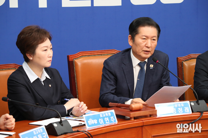 더불어민주당 정청래 대표가 6일 오전 서울 여의도 국회에서 열린 최고위원회의에서 발언하고 있다.