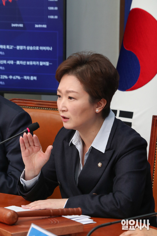 더불어민주당 이언주 최고위원이 6일 오전 서울 여의도 국회에서 열린 최고위원회의에서 발언하고 있다.