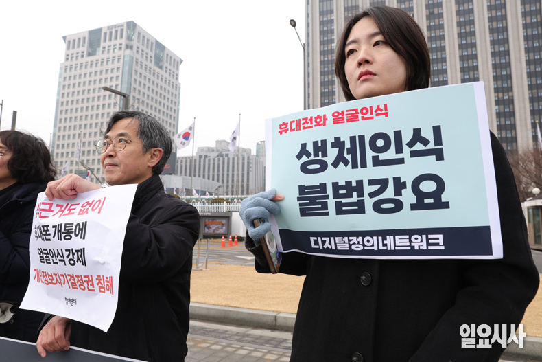 이들은 이날 기자회견에서 “지난해 12월 휴대전화 개통 시 안면인증이 시범 적용됐다. 오는 3월23일부터는 통신 3사 및 알뜰폰 전반에 전면 의무화될 예정”이라며 “이 정책은 시민들의 개인정보 자기결정권을 과도하게 침해하는 것으로, 국제 인권규범과 개인정보 보호원칙, 개인정보보호법을 정면으로 위반하고 있다”고 주장했다.