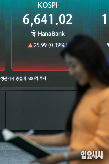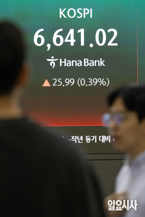 이날 코스피는 전 거래일보다 0.39% 상승한 6641.02로 장을 마감했다. 이날 지수는 전날보다 0.48% 오른 6646.80으로 출발한 뒤 한때 6712.73까지 치솟으며 역대 최고치 기록을 하루 만에 경신하기도 했다.