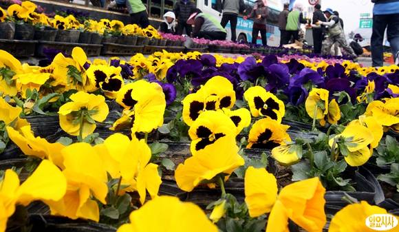 춘분을 하루 앞둔 19일 서울 청계광장 앞 화단에 서울 중부공원녹지사업소 관계자들이 꽃을 심고 있다.