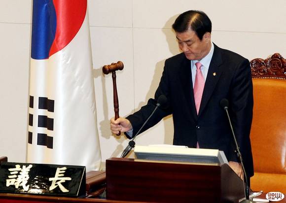 22일 오후 서울 여의도 국회 본회의장에서 강창희 국회의장이 정부조직법 전부개정안(대안)에 대한 수정안을 가결 시키고 있다.