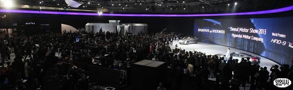 2013 서울모터쇼가 '자연을 품다, 인간을 담다'라는 주제로 28일 프레스데이를 시작으로 내달 7일까지 역동적이고 화려한 축제의 막을 올린다. 이날 현대자동차 부스에서 스포츠 쿠페 컨셉트카 HND-9이 공개되고 있다.